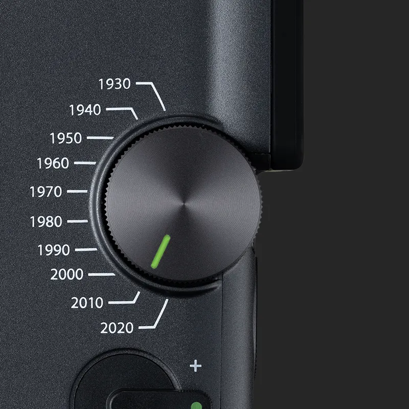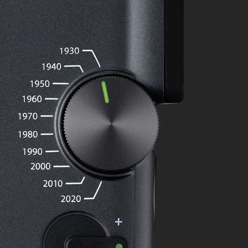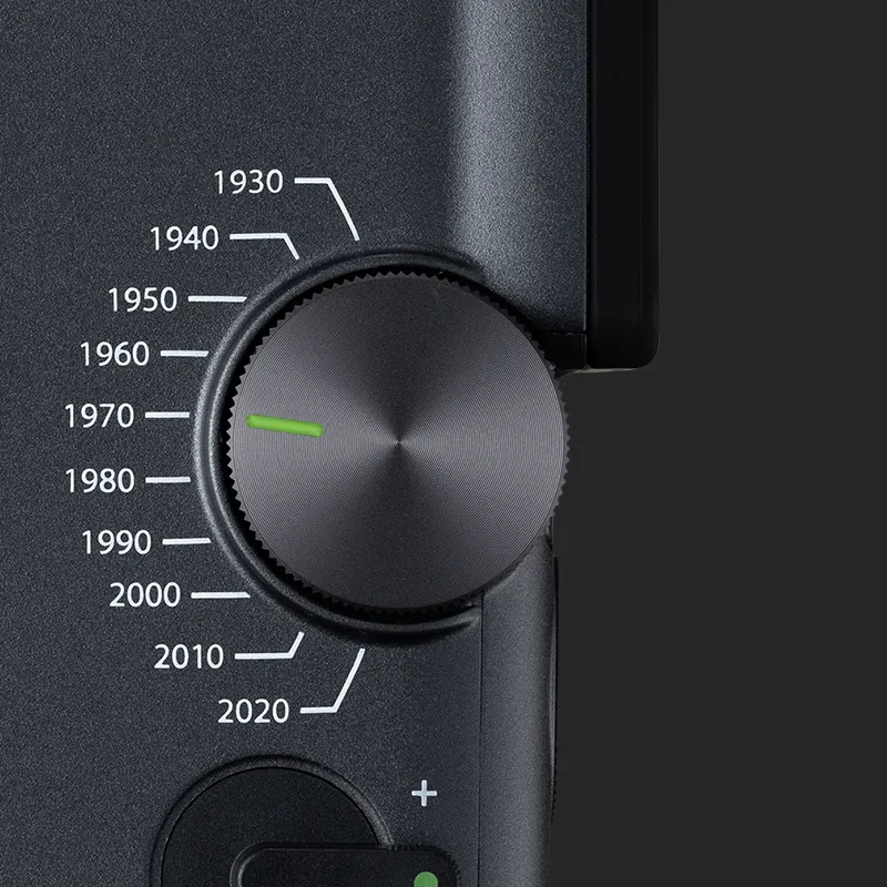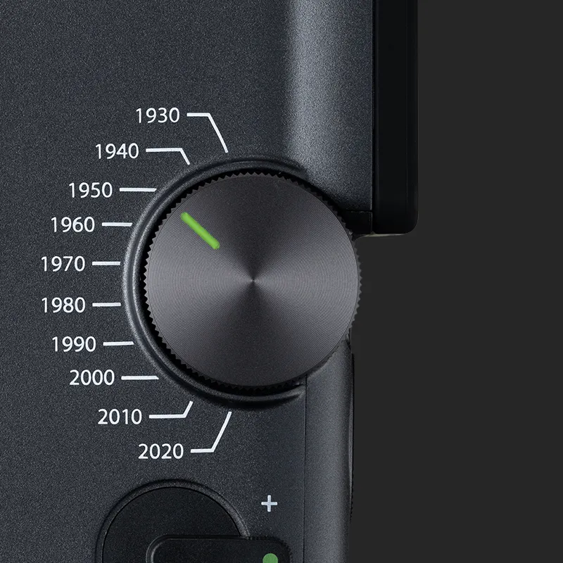 Vrnite čas nazaj z Eras Dial™ – ročnim časovnim strojem, s katerim lahko upravljate 10 desetletij sloga. Od zrnatega šarma 30. let prejšnjega stoletja do prefinjene ostrine 20. let prejšnjega stoletja – vsako obdobje prinaša svoj videz in zvočne učinke za brezčasen, filmski zaključek.