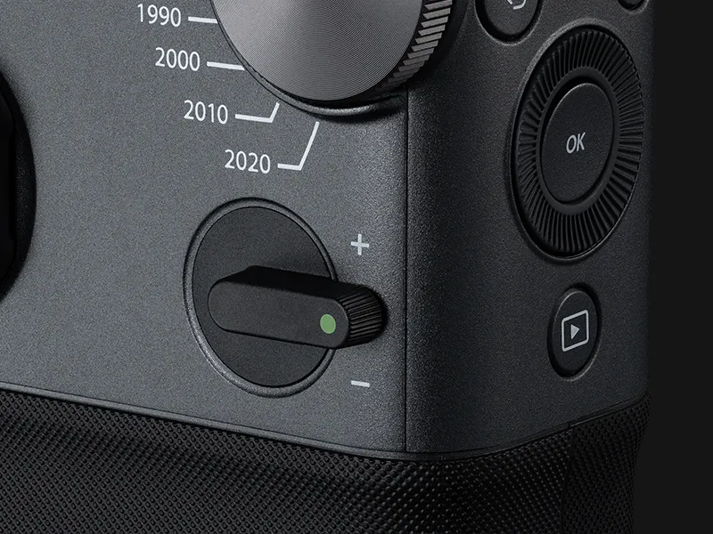 Približajte se trenutku z vgrajeno digitalno povečavo. Z otipljivo ročico za povečavo lahko povečate intimnost ali se umaknete za večji obseg in več vzdušja, ne da bi prekinili potek snemanja.