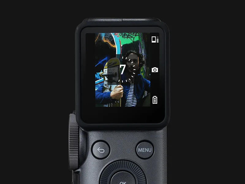 Počutite se kot reportažni fotograf, snemalec filmov ali ljubitelj stilskega oblikovanja z iskalom in nastavki za oprijem ter vrhunskim pasom za roko – vse, kar potrebujete za samozavestno snemanje videoposnetkov in zajemanje fotografij.